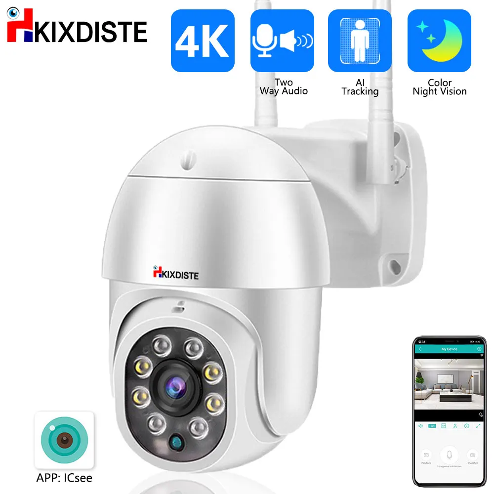 Two -Way Audio 8MP 4K Security Protection WIFI Camera Video Surveillance Outdoor PTZ Color Night Vision AI Auto Tracking ICsee - Купить с бесплатной доставкой
