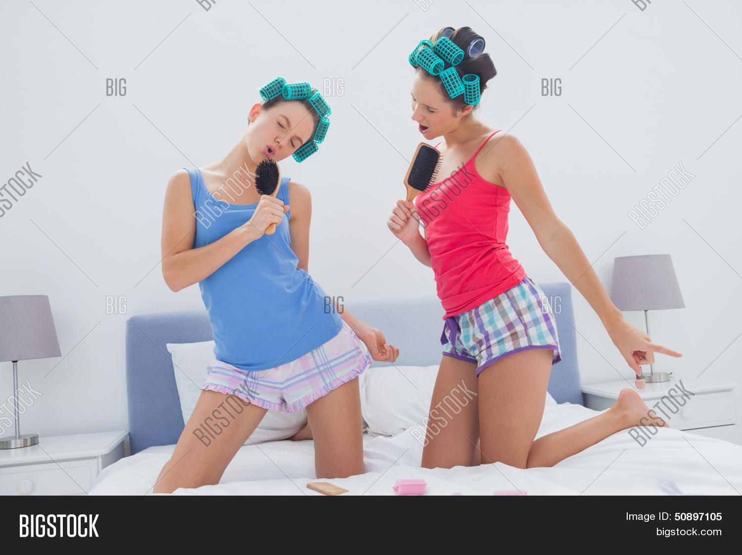 Two Attractive Girls on Bed Creates Out Activity with Toy 142 photos