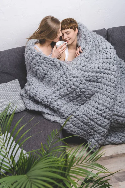 Two Beautiful Young Lesbians Have Sweet Time On Sofa