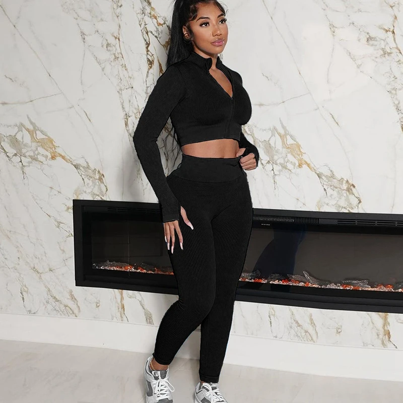 ZgfmIhcANHere you can buy Two Piece Set For Women Tracksuit Ribbed Long Zipper Shirts And Sweatpants New In Matching Groups Fall Y2k Clothing Sport Outfit with free delivery to your post office.