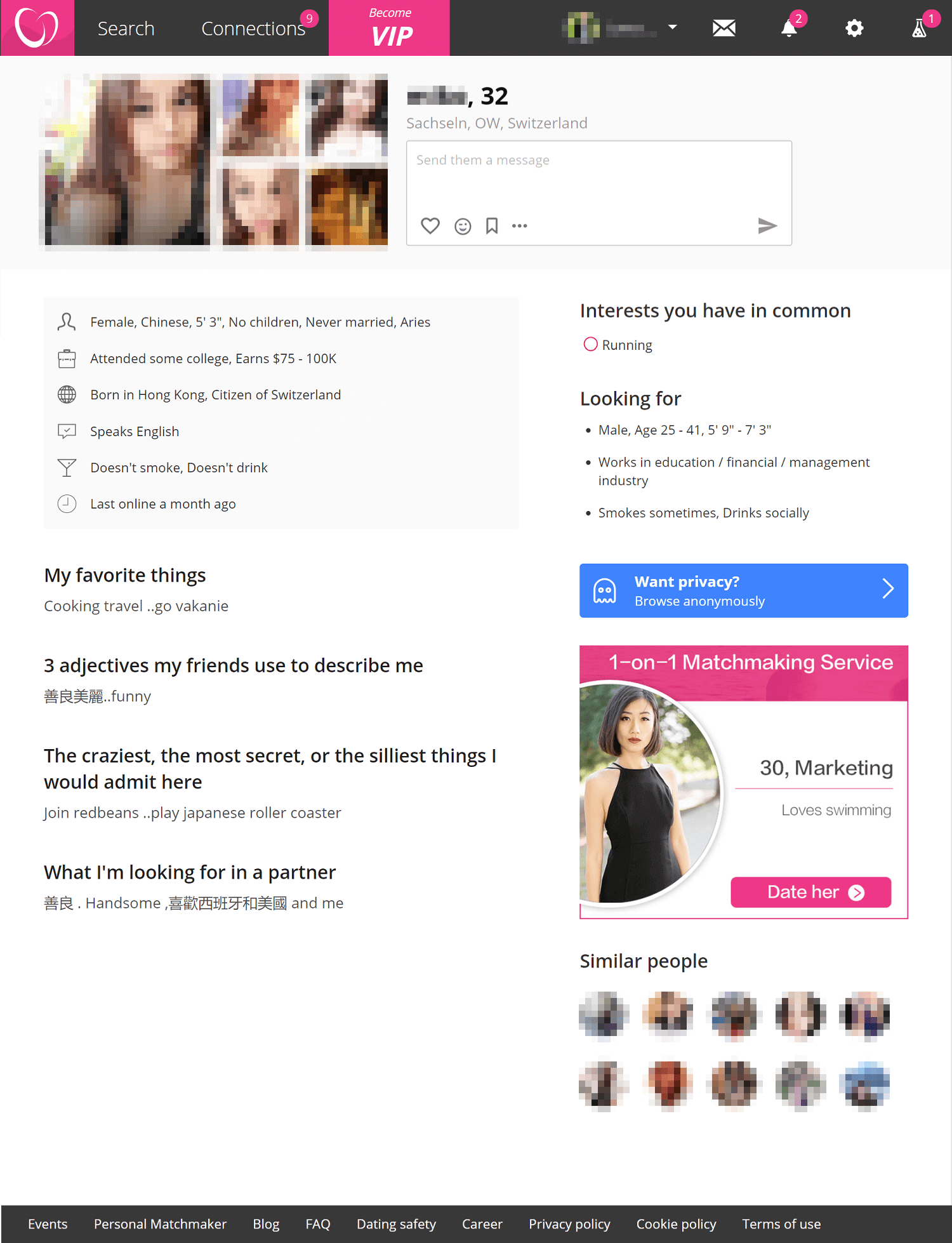 2RedBeans is quite a qualitative online dating platform that aims to help Chinese singles all over the world find their match . It features two forms of subscription-free and VIP that can be chosen by the potential website members .