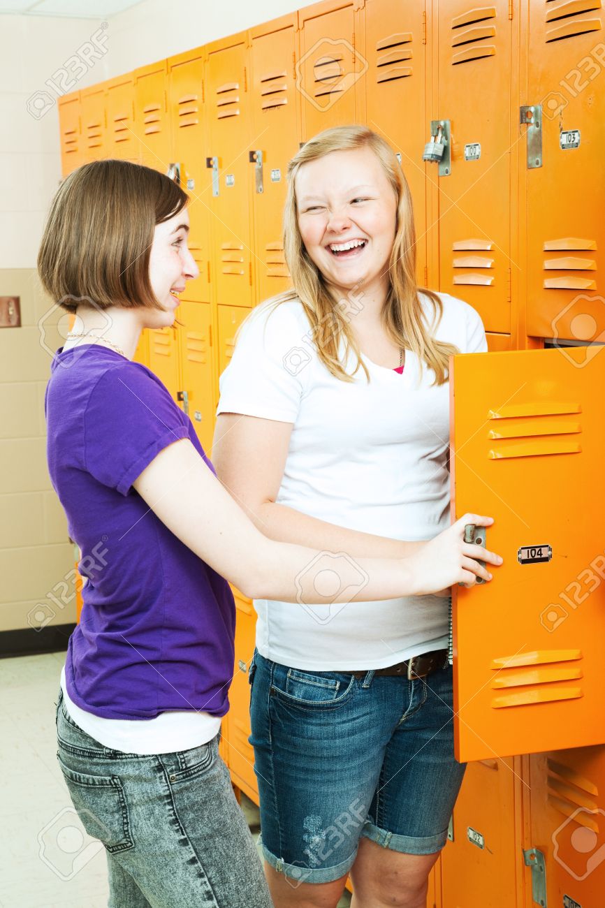 Two girls have fun locker