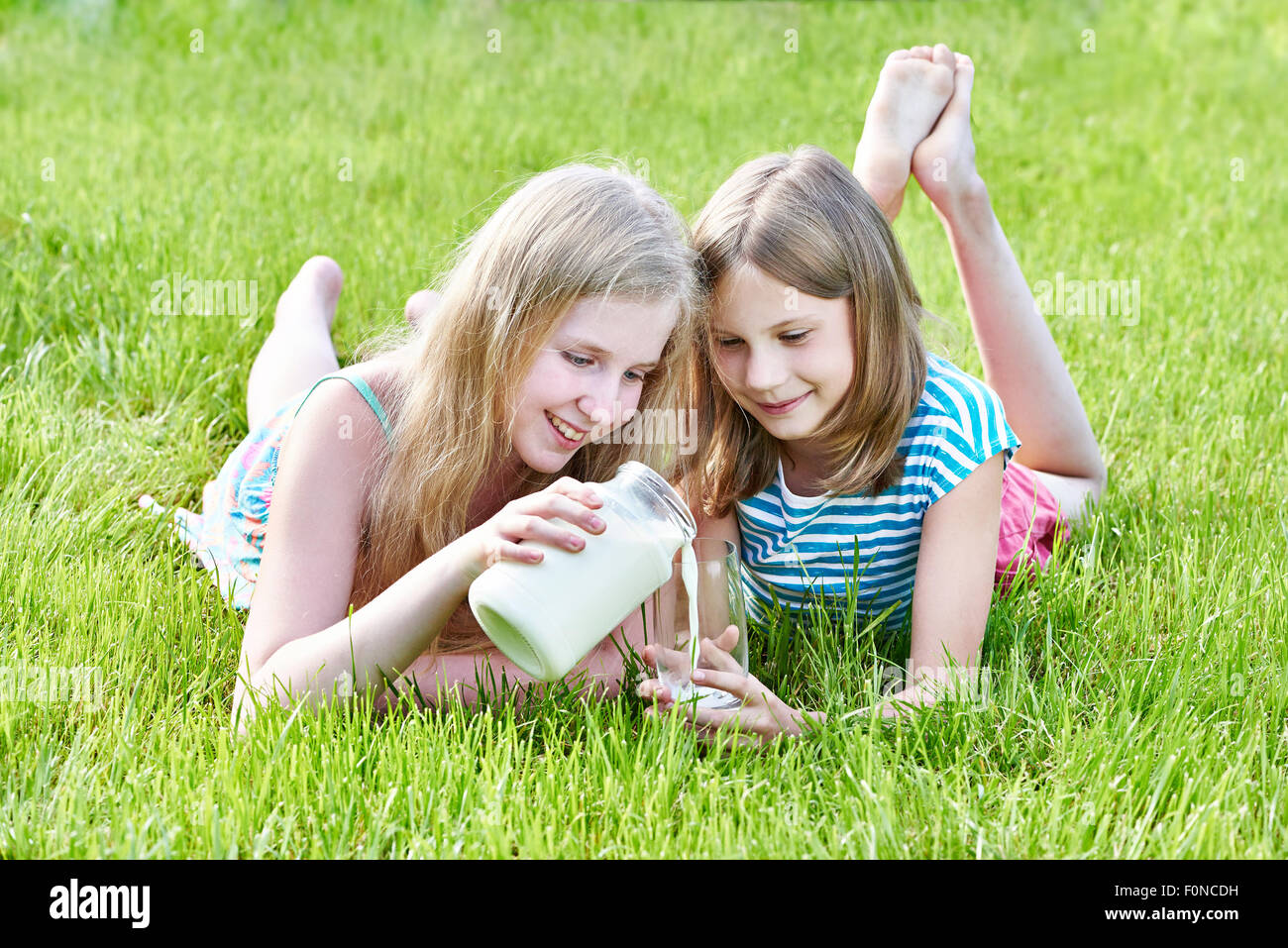 Two girls milking