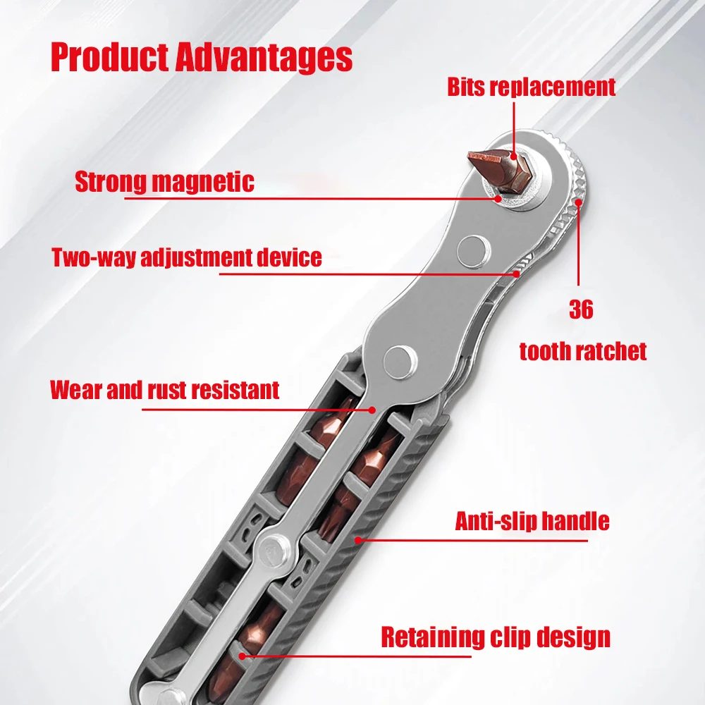 "Two-way Ratchet Screwdriver Forward and Reverse Head Wrench Bolt Driver Cross Slotted Screwdriver Set Bits Multi-functional Tool" * Buy Now With Free Shipping Just For $13