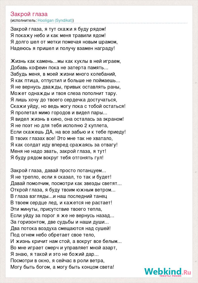 Ты закрываешь глаза текст