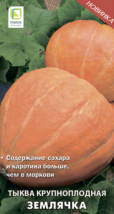 Тыква крупноплодная Землячка - содержание сахара и каротина больше, чем в моркови . Нежная, толстая, сладкая мякоть с великолепным дынным ароматом . Среднеспелый сорт .