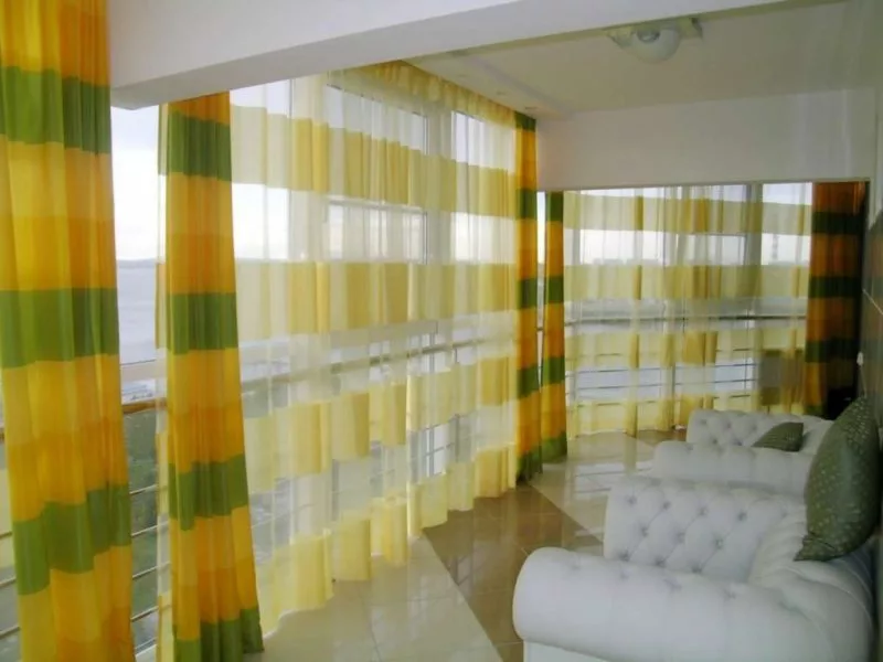 Цветная тюль может служить не только нейтральным фоном для того, чтобы подчеркнуть особенности интерьера . С ее помощью можно создать в комнате яркие акценты .