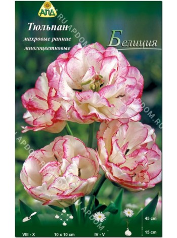 Тюльпан махровый Белиция по недорогой цене в интернет-магазине "Мой Садовод" . Свой питомник, быстрая доставка почтой . Описание сорта, фото, характеристики, информация по посадке и выращиванию .