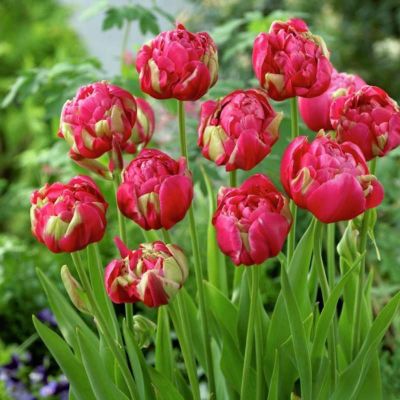 На ваш выбор - красные сорта (Ловящий солнце, Дабл Гудошник, Миранда) и тёмно-фиолетовые (Ройял Эйкр, Квин оф Найт, Греуз) . Цветёт тюльпан очень долго .