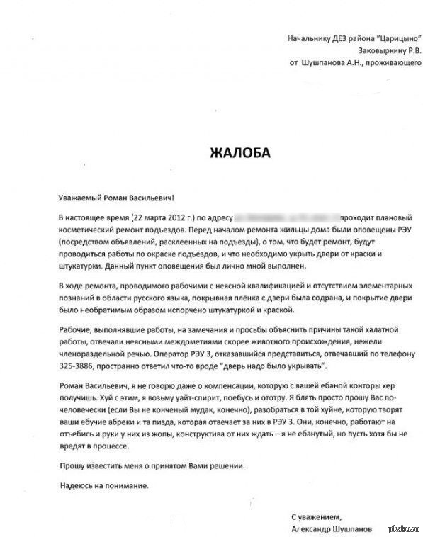У нее был жалоб