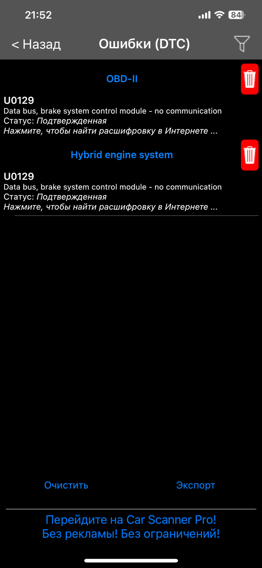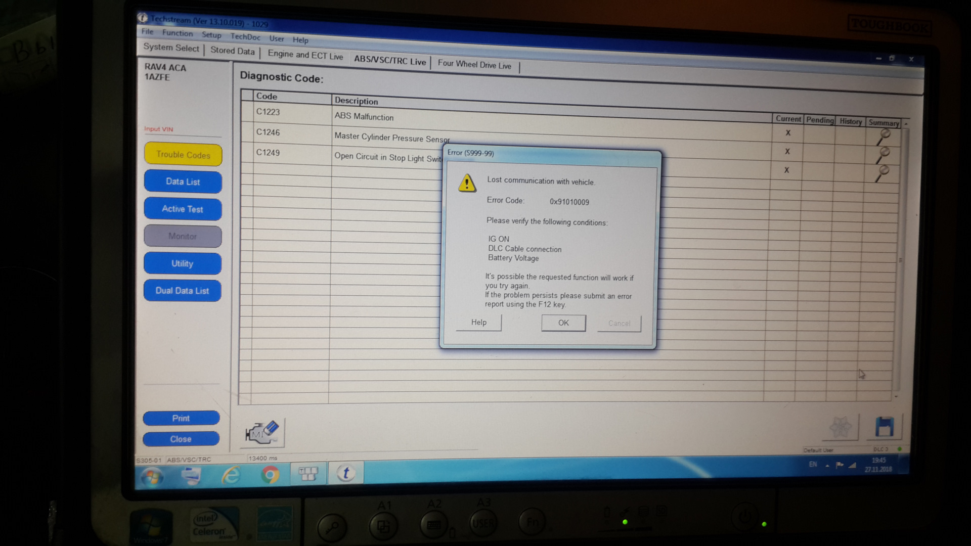 U0129 ошибка тойота