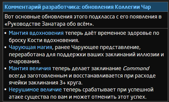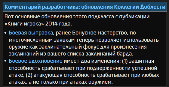 Подкласс — это специализация, которая даёт вам особые способности на конкретных уровнях барда. Всю дальнейшую карьеру вы будете владеть каждой из ваших черт подкласса для вашего уровня и ниже.