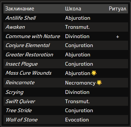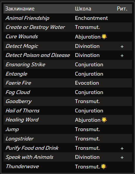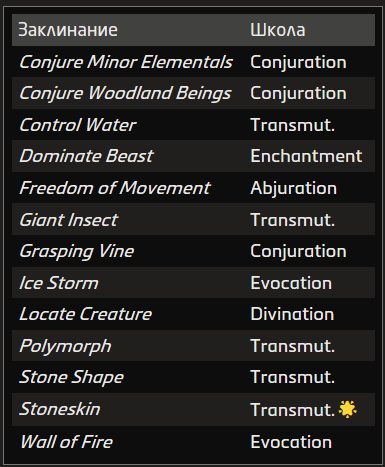 Природное заклинание питается силами природы и Внутренних миров. Этой магией владеют друиды и рейнджеры.