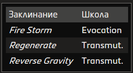 Описания заклинаний