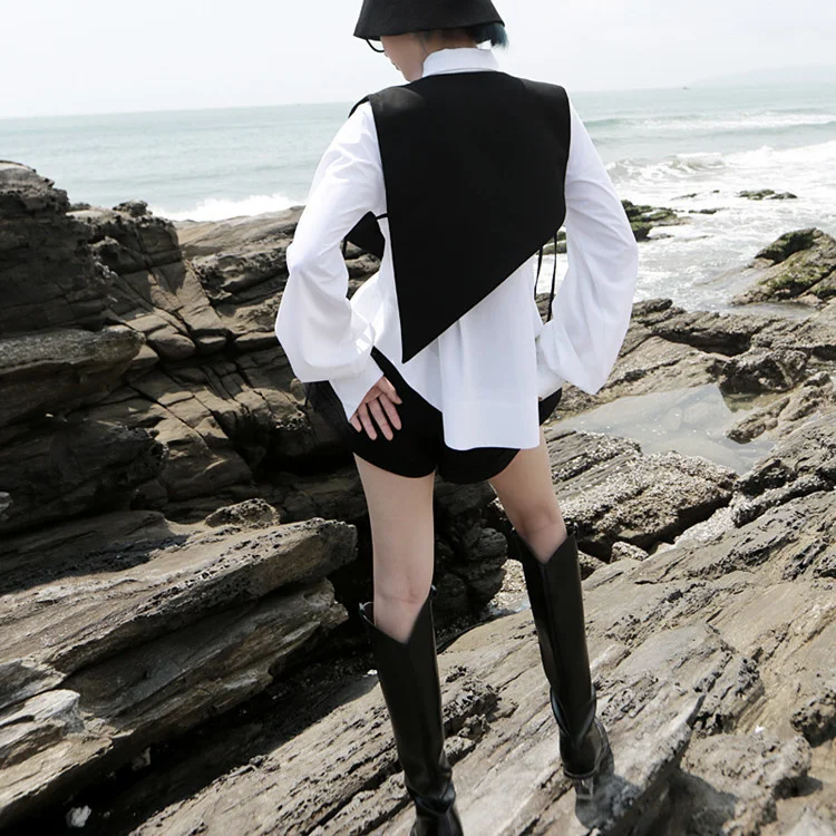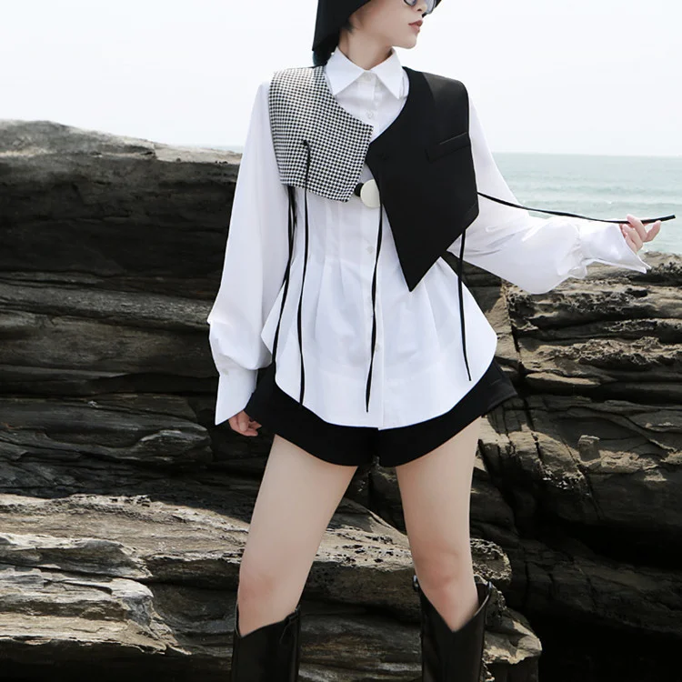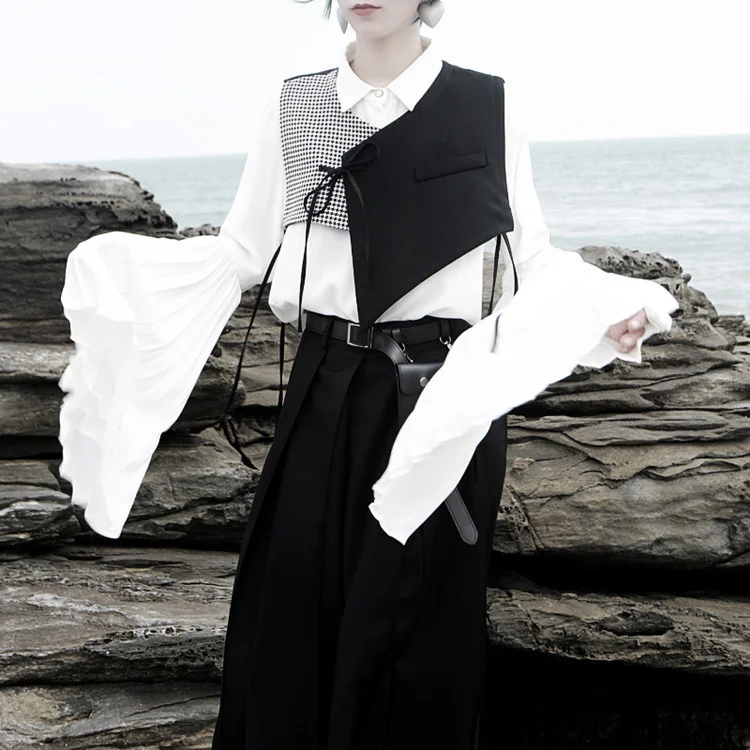 "UMI MAO Women's Clothing Yamamoto Dark 2022 Spring Structure System Houndstooth Stitching Irregular Cut Strap Horse A Female Y2K" * Buy Now Just For 17$