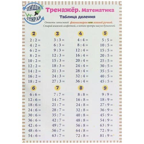 UN V. Krasnitskaya "Formateur. Mathématiques. Table de division"