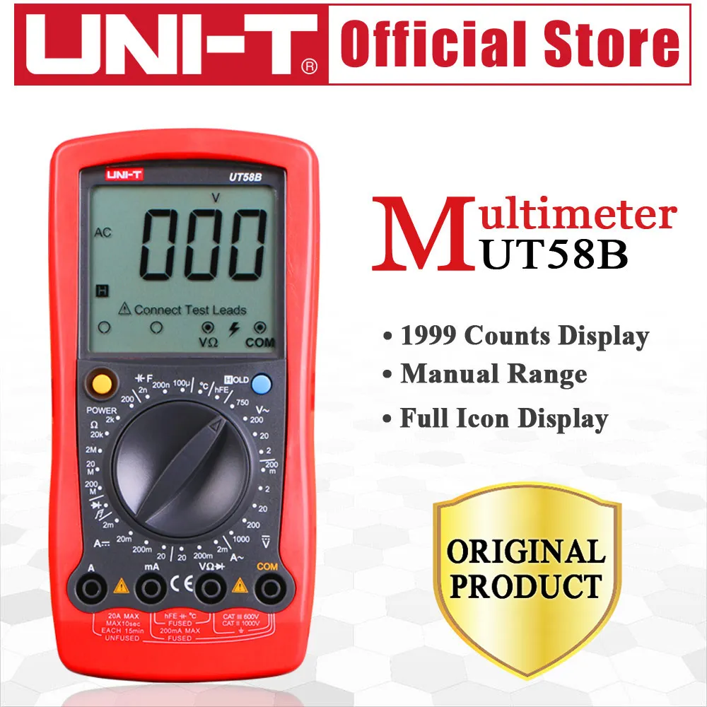TVKtqPnFXHere you can buy UNI-T UT58B General Digital Multimeters Full Icon LCD Display Capacitance Ohm Temperature Diode Transistor AC/DC Tester with free delivery to your post office.