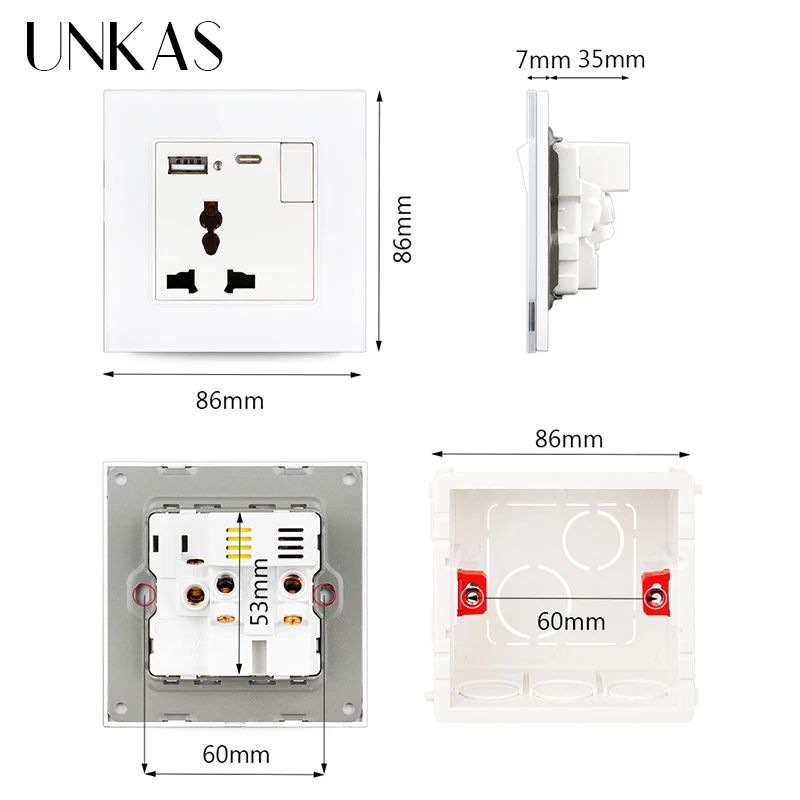 gxyjCYhDooЗдесь вы сможете купить UNKAS 3 Pin Universal Socket With Switch And USB Type C Charging Ports For iPhone Android Tempered Glass Panel с бесплатной доставкой до вашего почтового отделения.
