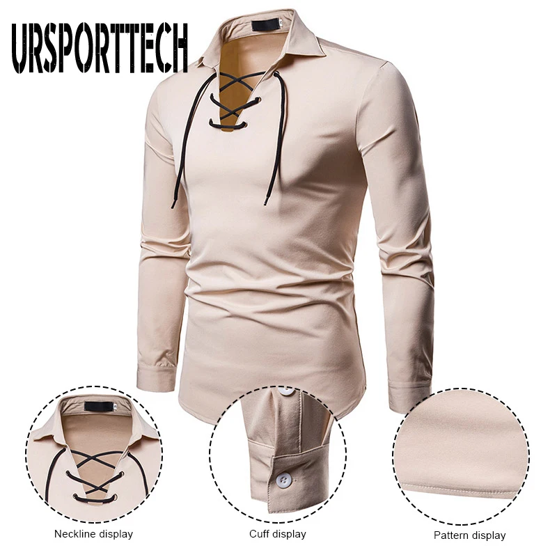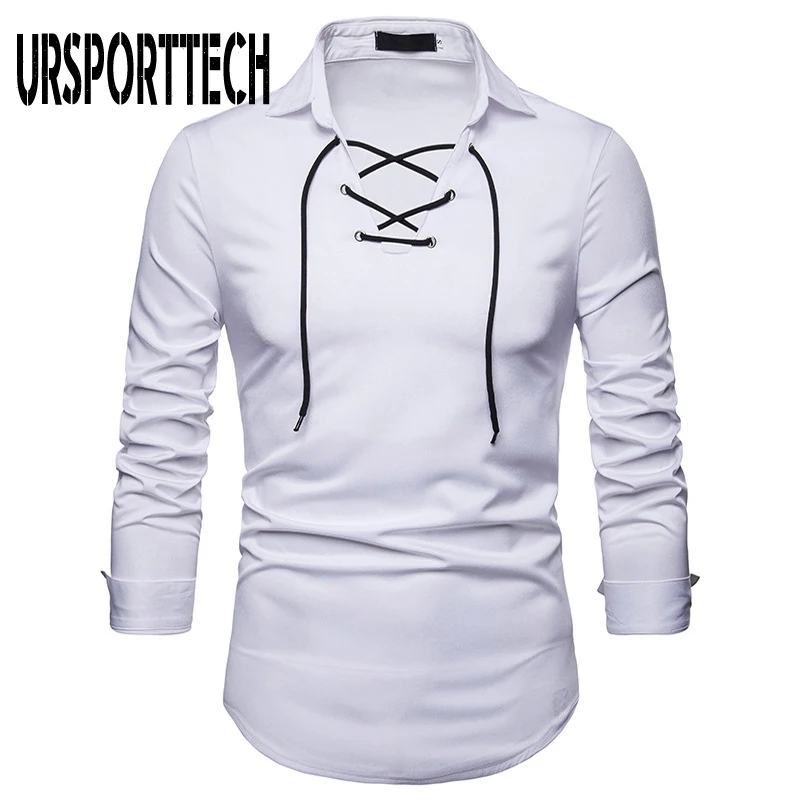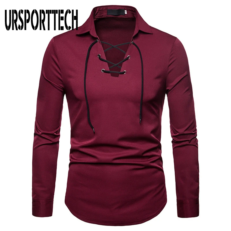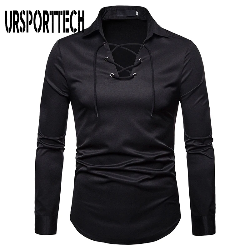 "URSPORTTECH New Fashion Men Shirt Long Sleeve Bandage Shirt Men Blouse Plus Size Shirt Men Business Casual Slim Fit Clothing" * Buy Now Just For 25$