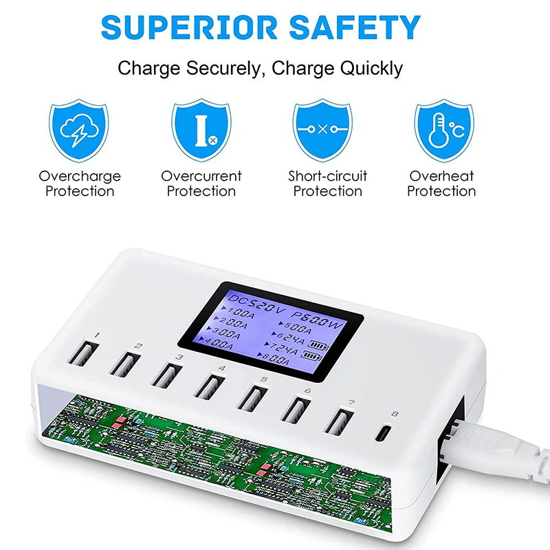 SOMTmPaKДолго искали URVNS 60W USB Charger 8-Port 12A Charging Station Multi Port USB Hub Compact Size LCD Display for iPhone iPad Samsung Tablet, но не могли найти? Предоставляем вашему вниманию URVNS 60W USB Charger 8-Port 12A Charging Station Multi Port USB Hub Compact Size LCD Display for iPhone iPad Samsung Tablet по лучшей цене на рынке!
