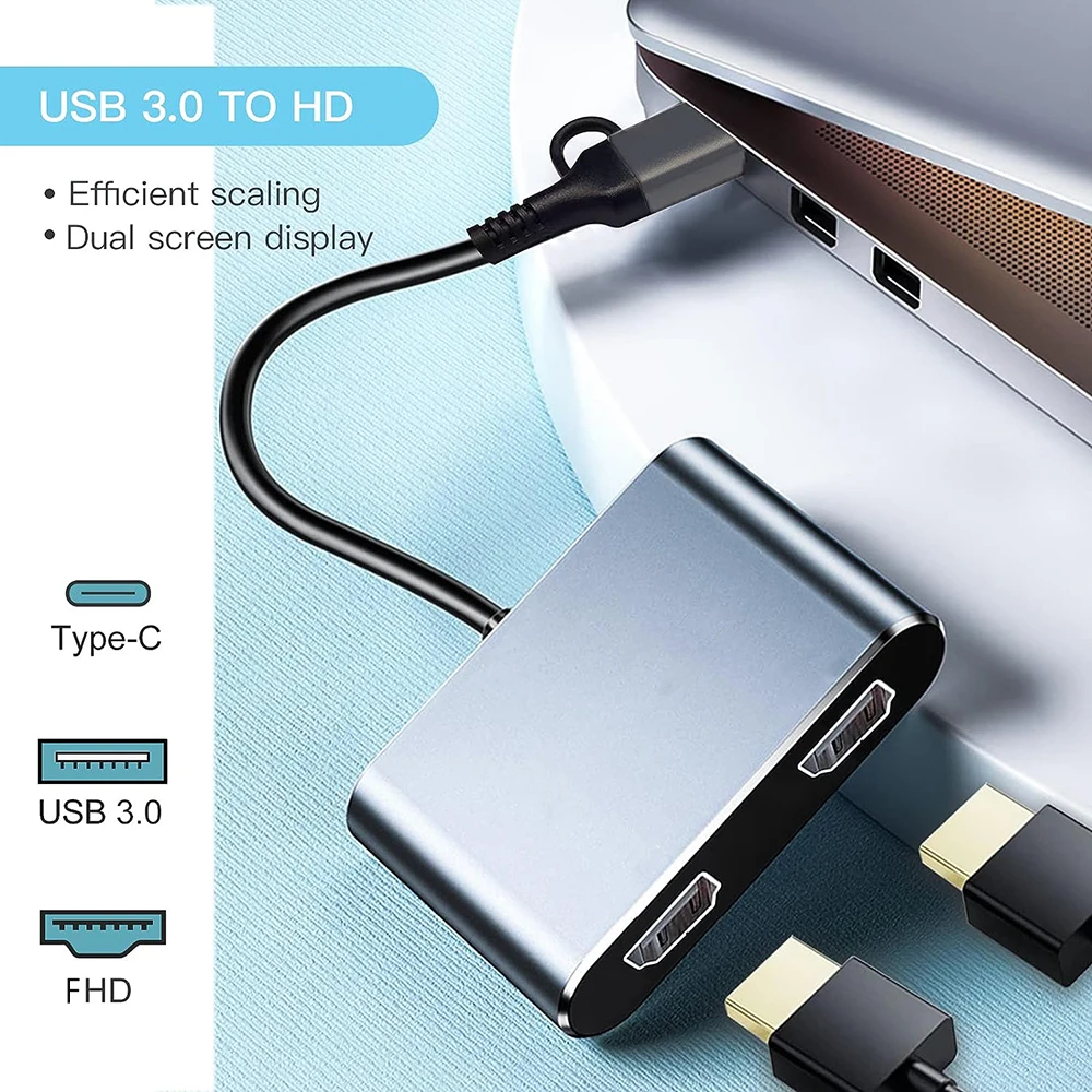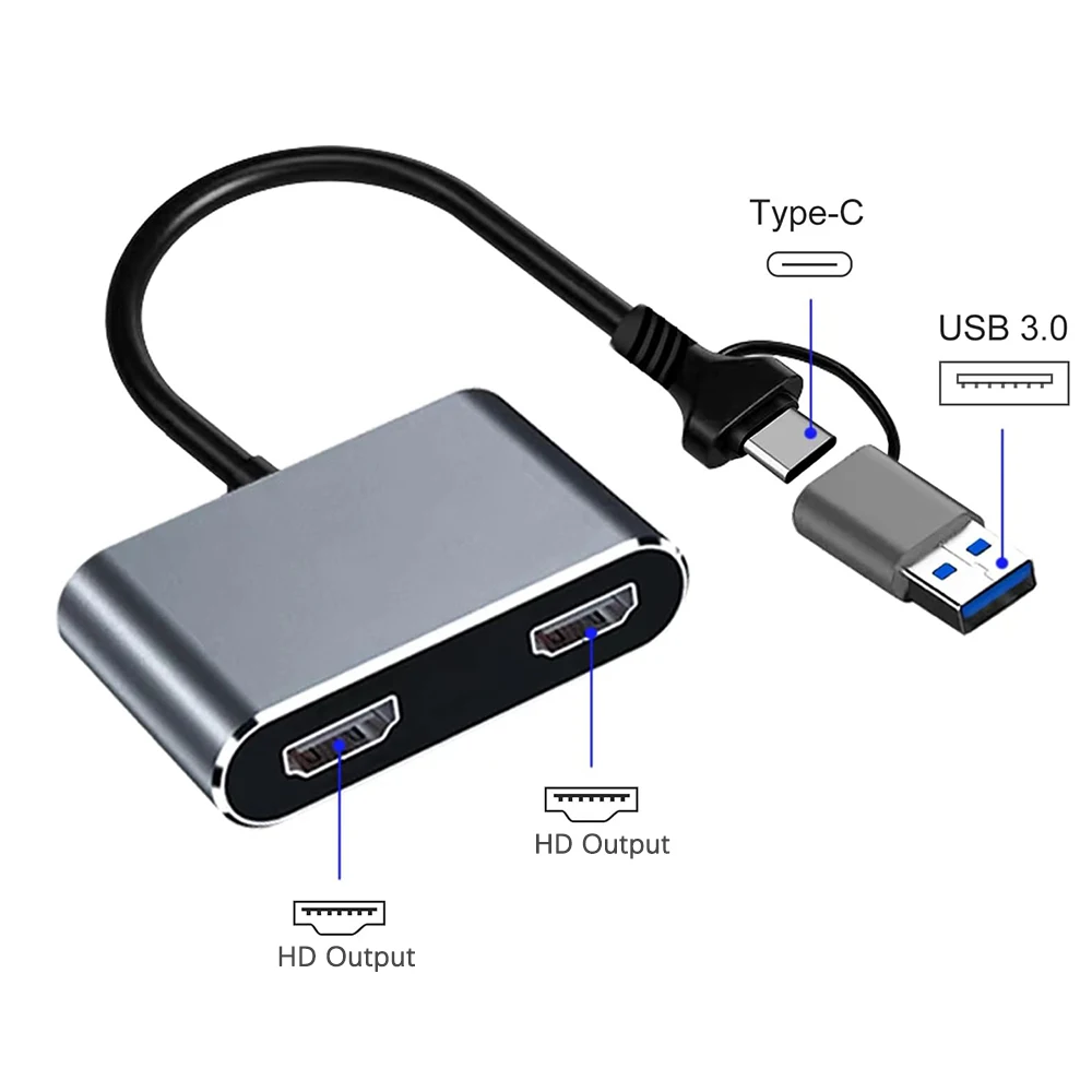 USB 3.0 Type-C to Dual HD Display Converter Two FHD Ports Same Screen Compatible for Windows Desktop Laptop Android Phone Tablet - Купить с бесплатной доставкой
