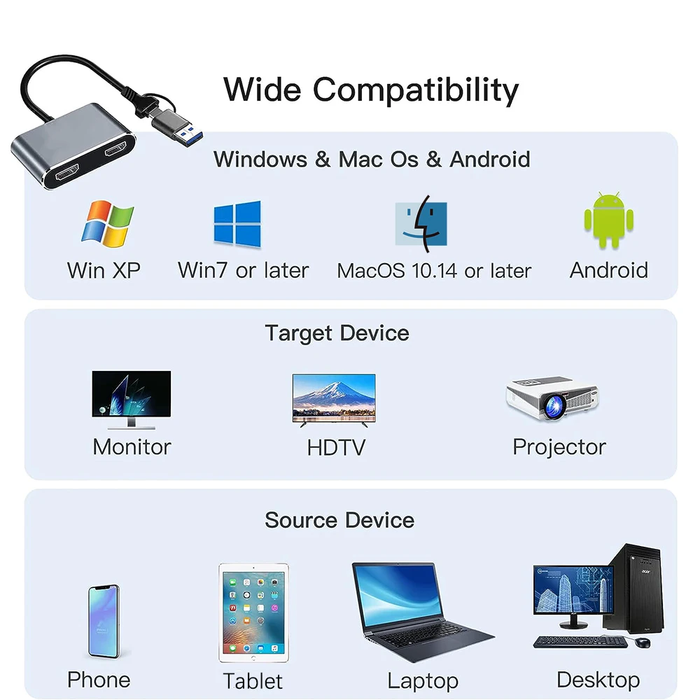 jocQkTAlspЗдесь вы сможете купить USB 3.0 Type-C to Dual HD Display Converter Two FHD Ports Same Screen Compatible for Windows Desktop Laptop Android Phone Tablet с бесплатной доставкой до вашего почтового отделения.