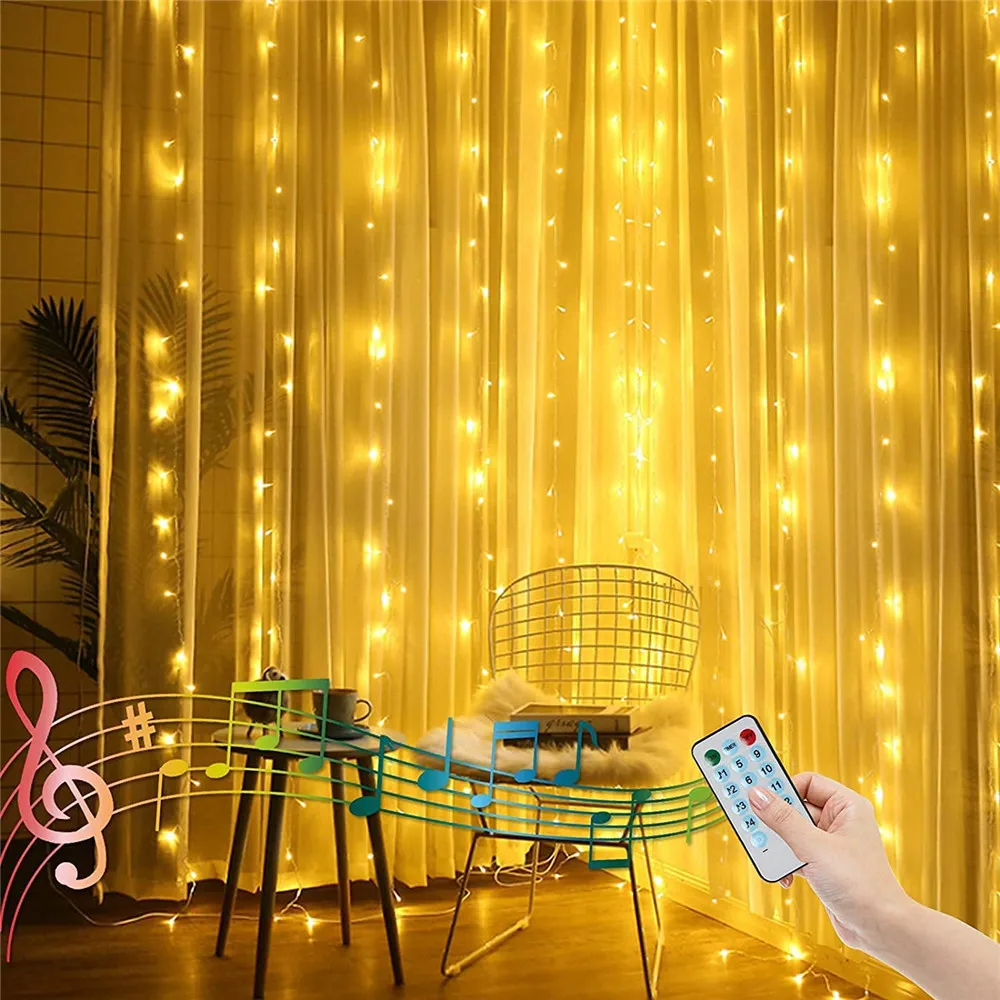 USB 8Modes Music Sound Activated Curtain String Lights 3MX3M With Hook Up Remote Control for Christmas Bedroom Window Lighting - Купить с бесплатной доставкой