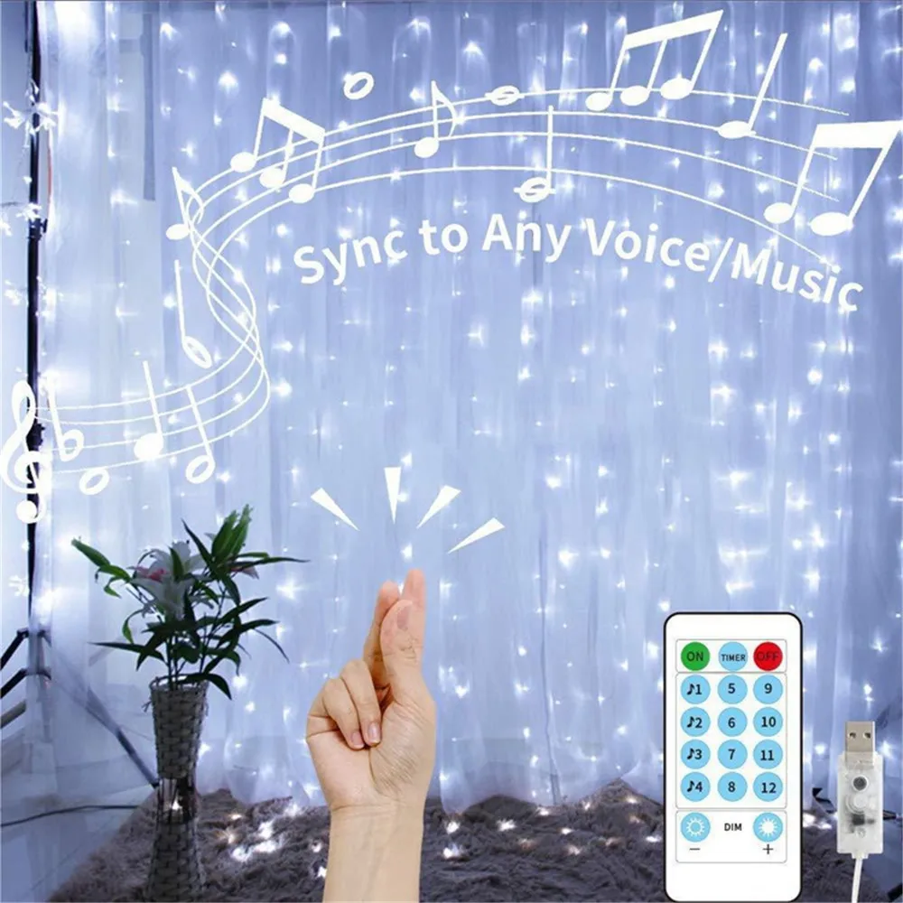 DnidbZapDcЗдесь вы сможете купить USB 8Modes Music Sound Activated Curtain String Lights 3MX3M With Hook Up Remote Control for Christmas Bedroom Window Lighting с бесплатной доставкой до вашего почтового отделения.
