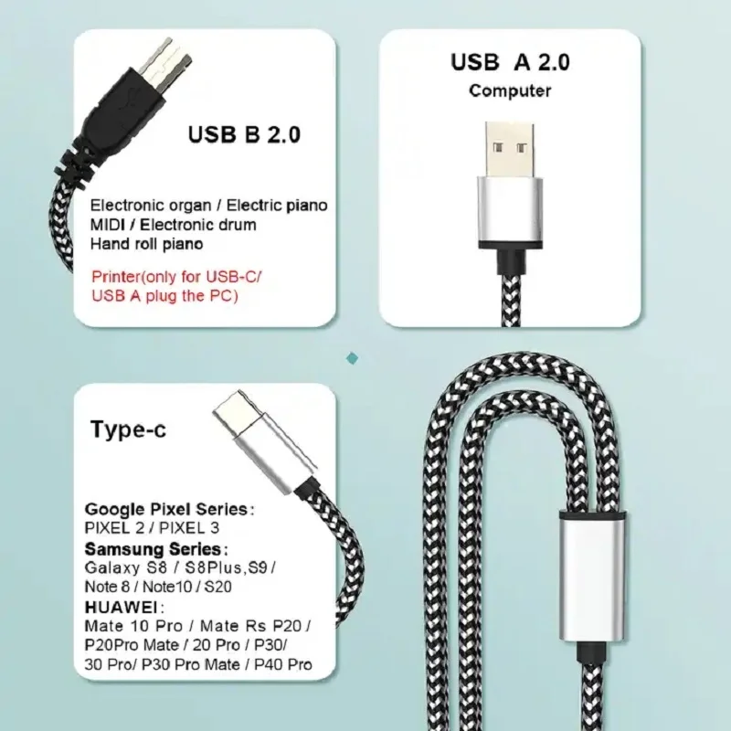 USB B Hub Splitter Converter USB-B 2.0 To USB A Type C MIDI Cable Adapter For Printer Scanner Macbook iPad Pro Laptop Samsung - Купить с бесплатной доставкой