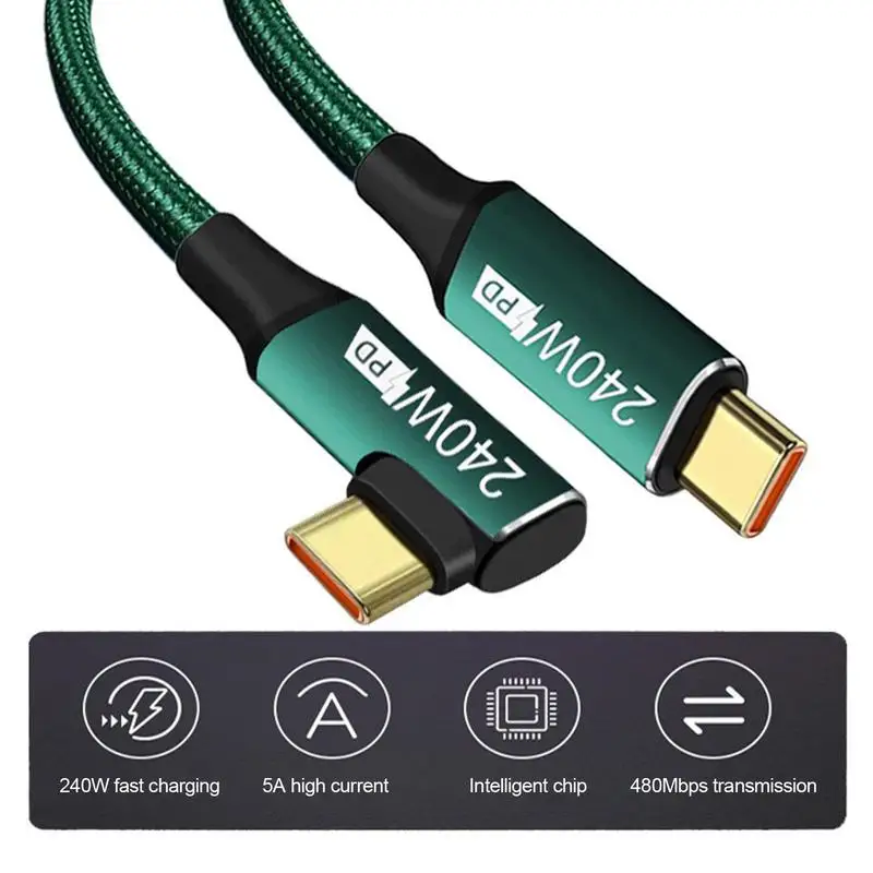 USB C Fast Charging Cable Waterproof 90 Degree USB C To USB C Data Cable 240W High Speed Cable With Overheating Protection - Купить с бесплатной доставкой