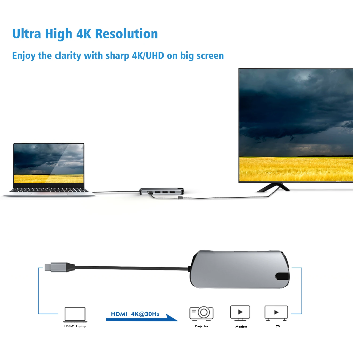 "USB C Hub Type C 3.1 To HDMI 8 In 1 Adapter with RJ45 SD TF Card Reader PD Fast Charge Docking Station For MacBook Laptop PC" * Buy Now With Free Shipping Just For $30