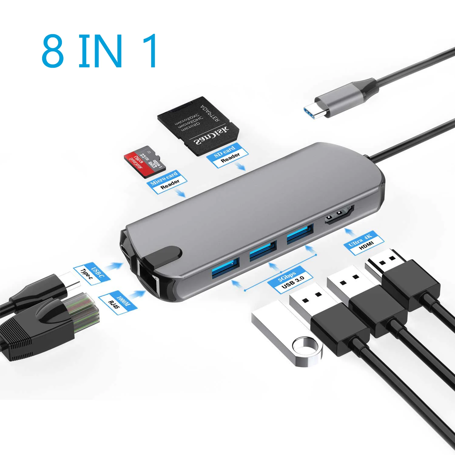 rjeaRPLkHere you can buy USB C Hub Type C 3.1 To HDMI 8 In 1 Adapter with RJ45 SD TF Card Reader PD Fast Charge Docking Station For MacBook Laptop PC with free delivery to your post office.