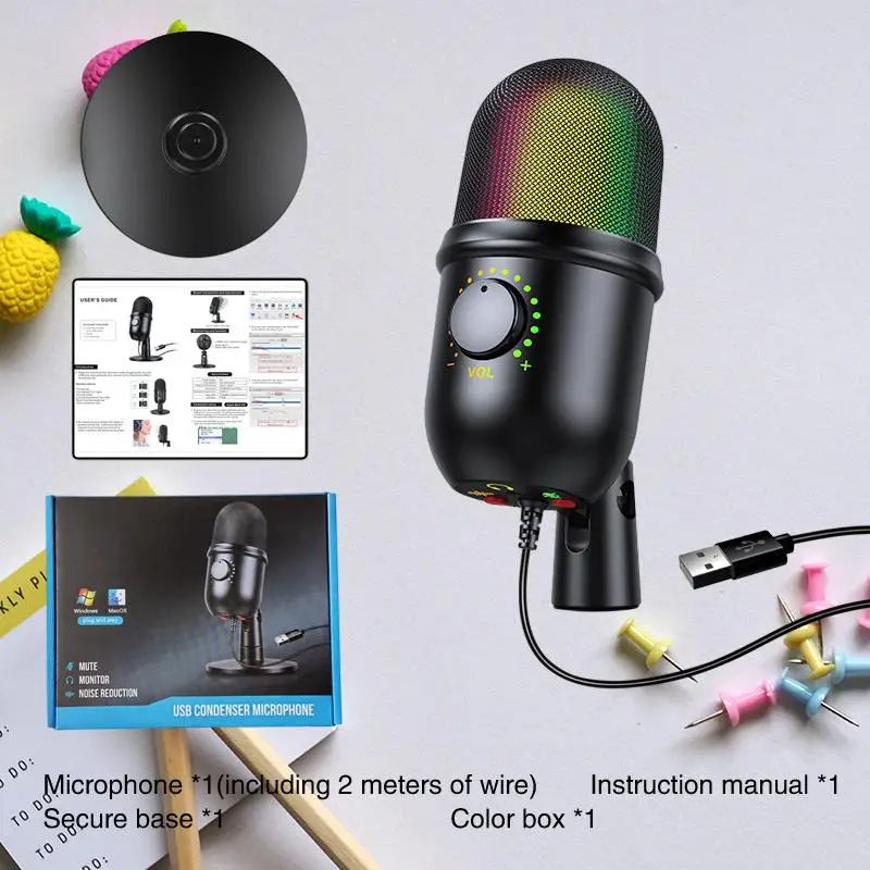 rvTCcJqSWHere you can buy USB Condenser Microphone Computer Dubbing Recording Mobile Phone Live Noise Reduction Game Gaming Luminous Microphone with free delivery to your post office.