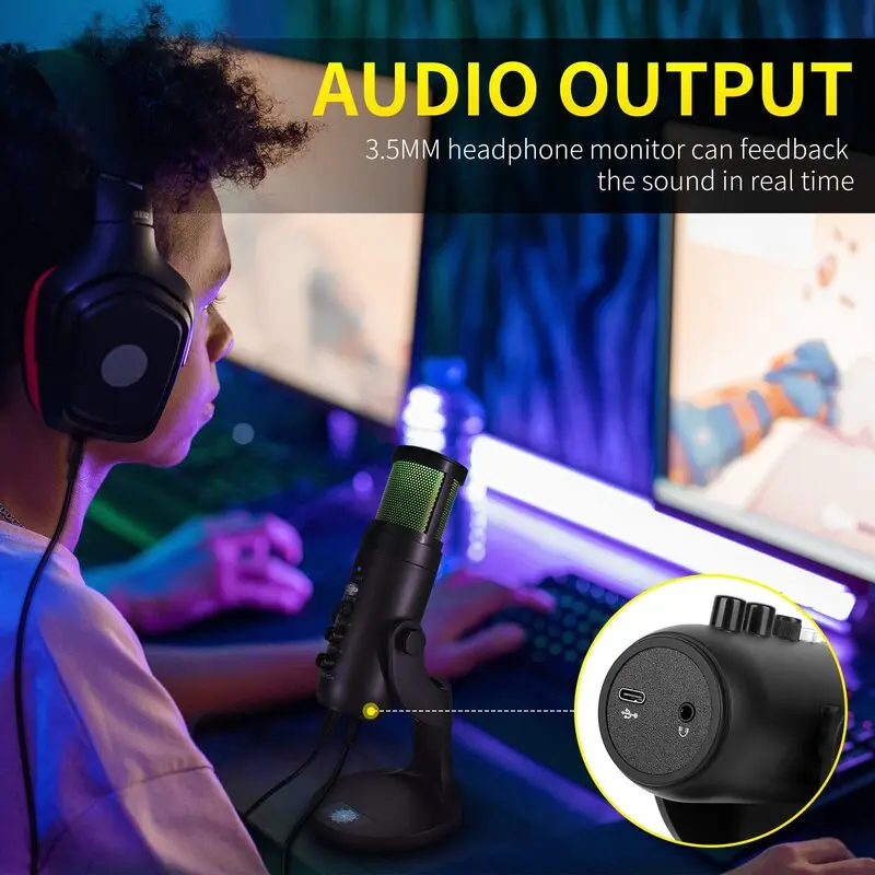 CdBFvdxjpqHere you can buy USB Condenser Microphone Desktop,PC Gaming Microphone with RGB Lighting, Noise Cancelling Touch Screen Mute Compatible Computers with free delivery to your post office.
