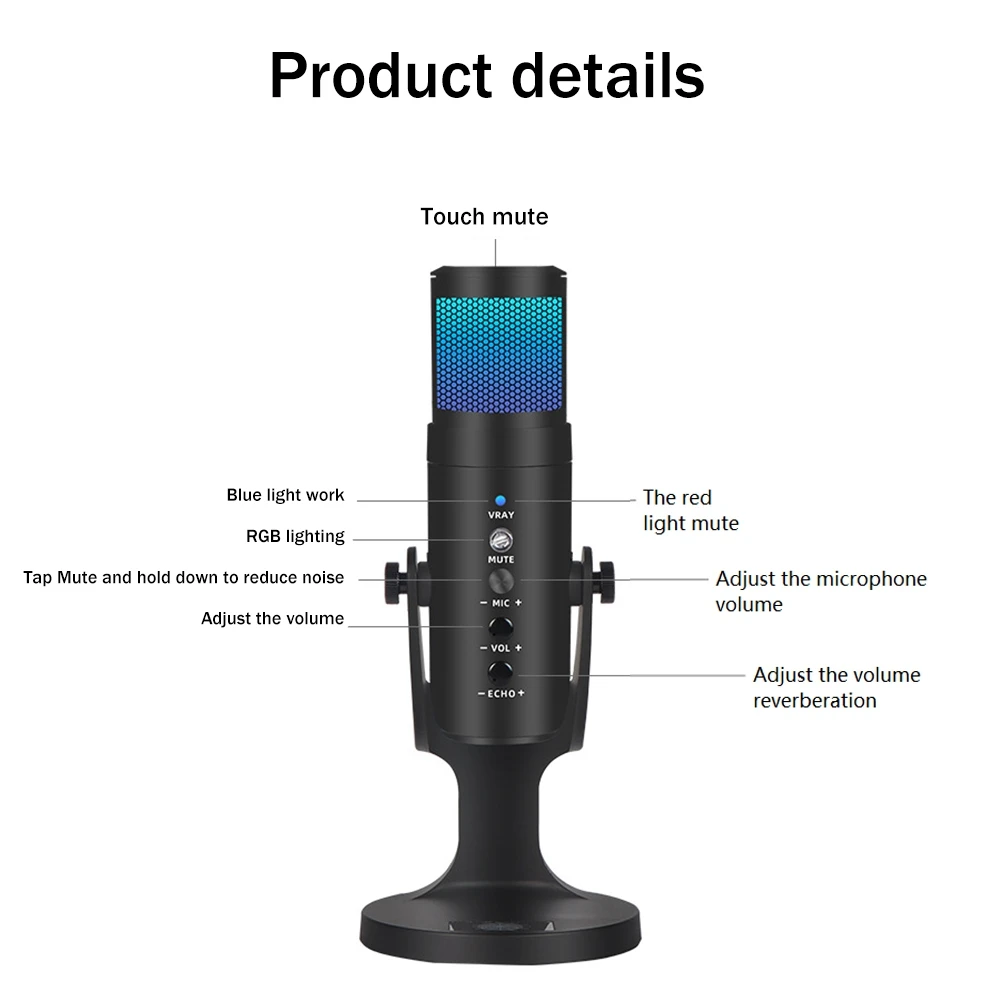 hLrXOmBVЗдесь вы сможете купить USB Condenser Microphone Mobile Phone RGB Dynamic Light Effect Microphone Computer Live Recording Game Microphone с бесплатной доставкой до вашего почтового отделения.
