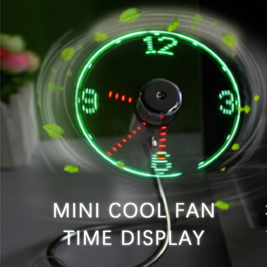 USB Fan Adjustable Mini Flexible Fan LED Light Time Clock Desktop Cool Gadget Time Display - Купить с бесплатной доставкой