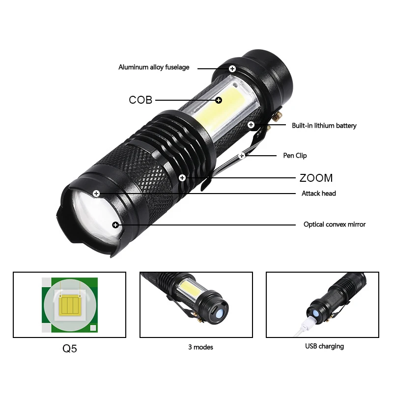ywtzAhNSHere you can buy USB Rechargeable Flashlight XPE+COB LED Flashlight Pocket Emergency Flashlight Waterproof Torch Tactical Flashlights with free delivery to your post office.