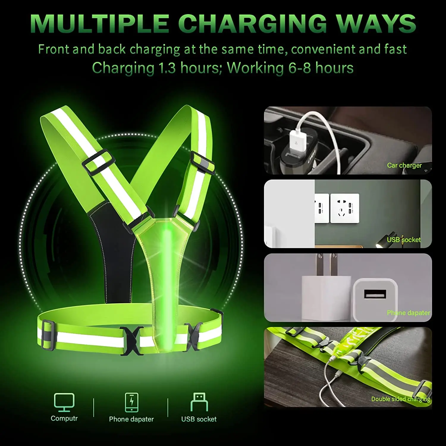 gLNaXqpKSHere you can buy USB Safety Reflective Vest Luminous Reflective Vest LED Light Reflective Vest Adjustable Vest Night Running Cycling Sports with free delivery to your post office.