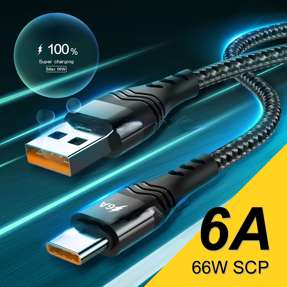 «USB Type C Cable 6A 66W SCP For Huawei Mate 40 Pro 5A Fast Charging USB C Charger Cable Data Cord for Xiaomi Samsung OPPO 1/2/3M» по лучшей цене на рынке! Всего за 11$ (1045рублей)