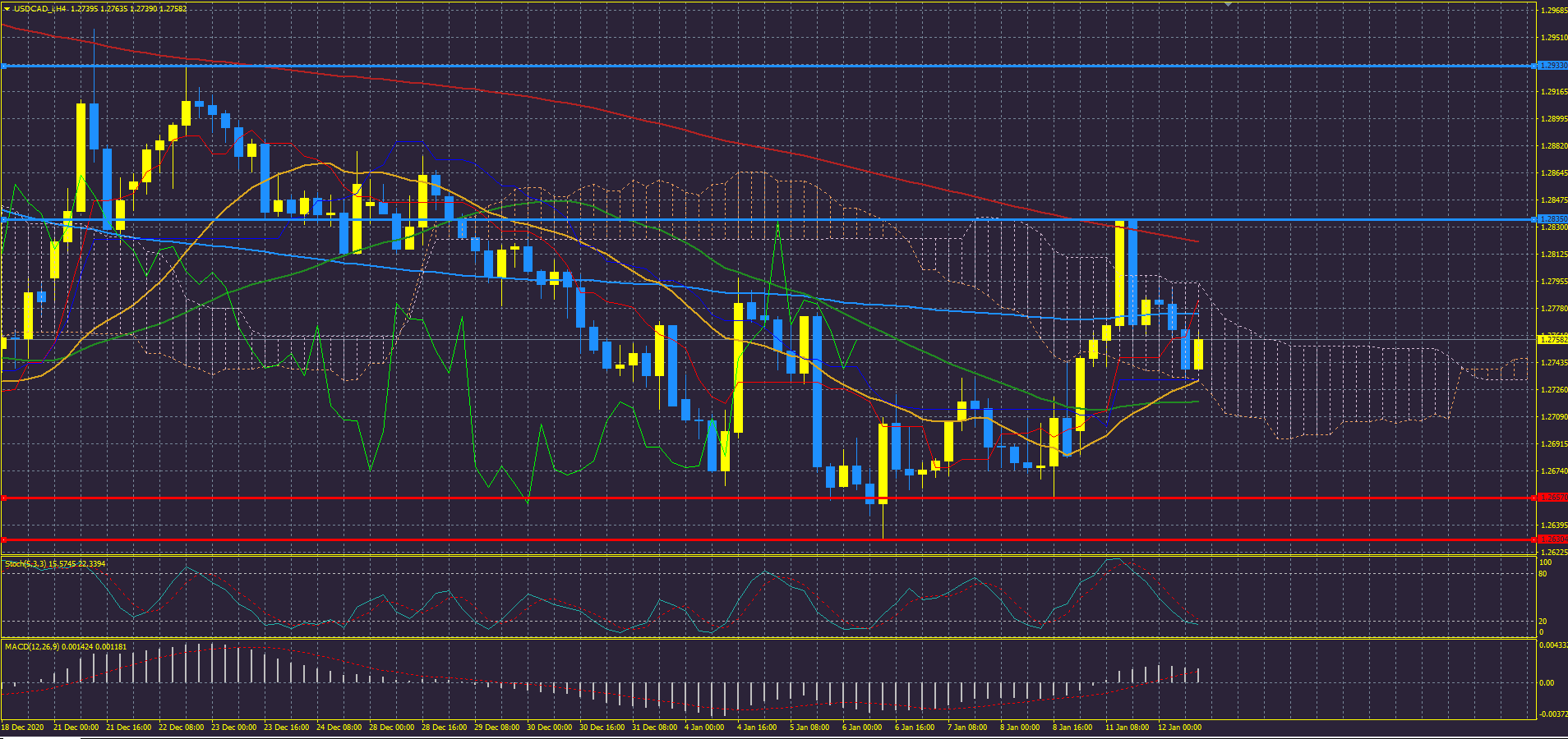 Пара USD/CAD продолжает своё падение, отскочив от 200-периодной простой скользящей средней (SMA) около сопротивления 1,2835, и сейчас колеблется в облаке Ишимоку.