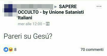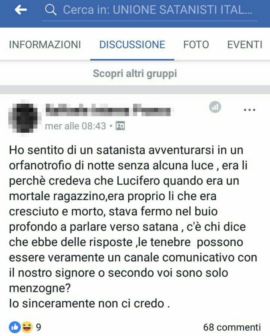 Questo screenshot secondo me rappresenta la maggior parte della scena italiana. Questa gente si affaccia al satanismo non perché crede davvero nei suoi ideali, ma perché è annoiata dal cristianesimo. Infatti nella loro testa "sostituiscono" il dio cristiano con Satana pensando sia la stessa cosa e comportandosi allo stesso modo. Nel frattempo non fanno nulla di vagamente utile e perdono tempo. È la versione satanista di "buongiornissimo kaffe". Lo troverei divertente se la maggior parte delle persone non fosse divisa tra loro e i fanatici del clero di JoS che utilizzano solo le vibrazioni per meditare.