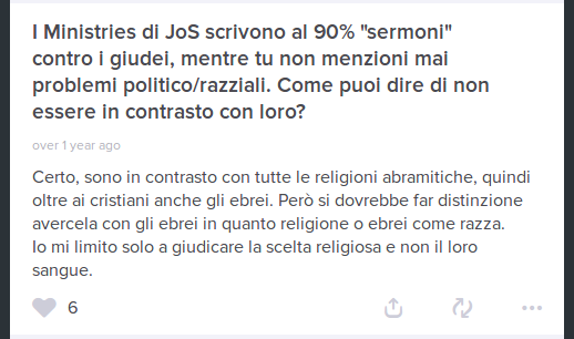 Voglio far notare che una persona (ovviamente con il profilo fake, per non rimanere contaminata dal degrado radioattivo che questi gruppi emettono), Shaytan Kundalini, è stata bannata da uno dei gruppi ed il suo post rimosso per aver chiesto cosa ne pensassero riguardo agli ebrei. Mentre questa spazzatura viene mantenuta nel gruppo.