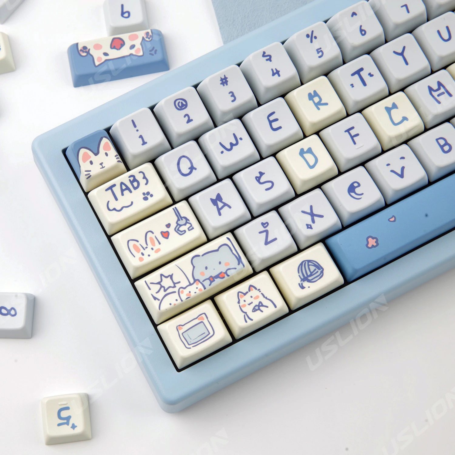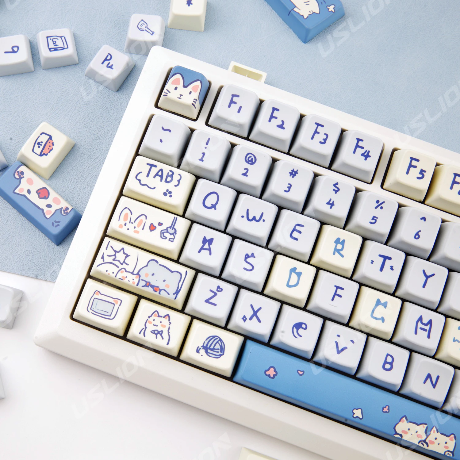 fsnIFKgdHere you can buy USLION 147Keys MDA Profile Blue Cat Keycaps For Gaming Mechanical Keyboard Mx Switch PBT Sublimation Customized DIY Key Caps Kit with free delivery to your post office.