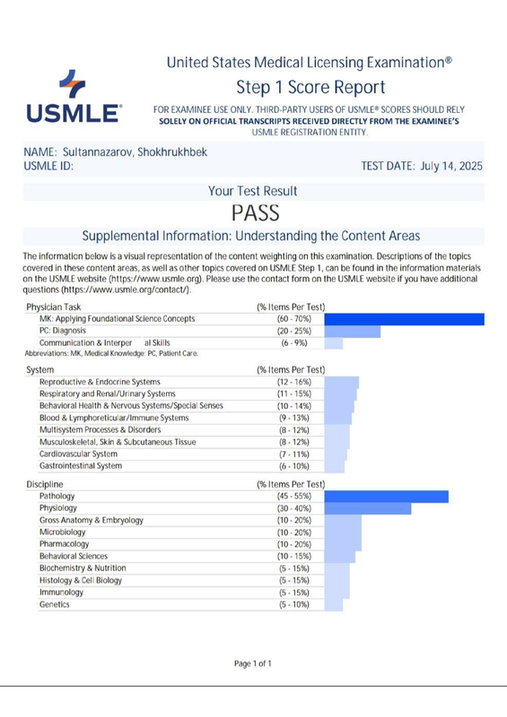 USMLE STEP 1 - PASS | Shokhrukhbek