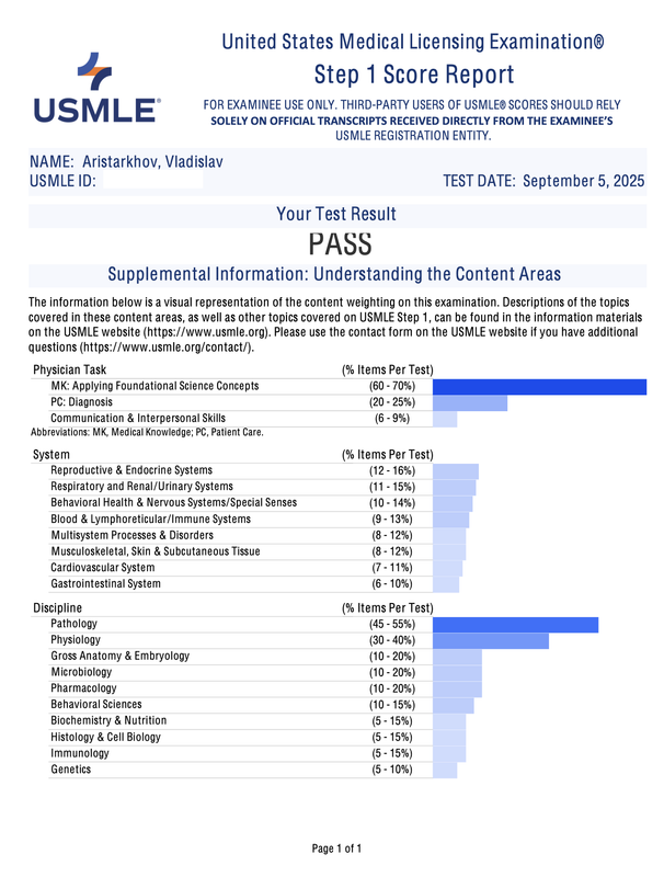 USMLE STEP 1 - PASS | Vladislav
