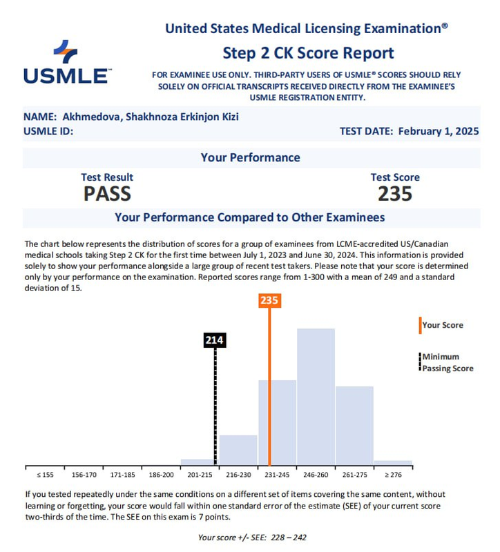 Хочу выразить огромную благодарность всем, кто поддерживал меня на этом пути. Спасибо моей семье за терпение и веру в меня, друзьям за мотивацию и моральную поддержку, а также всем, кто делился своим опытом и ценными советами. Отдельная благодарность Фарход ака за помощь в планировании подготовки, и команде Medcloud. Я невероятно ценю этот опыт и испытываю огромное облегчение после сдачи Step 2. Особенно радует осознание, что я еще на шаг ближе к своей конечной цели. Этот путь был нелегким, но, как говорится, "Преодолевая трудности, мы становимся сильнее". Главное — верить в себя, двигаться вперед и помнить, что каждый пройденный этап приближает нас к мечте. 💪✨