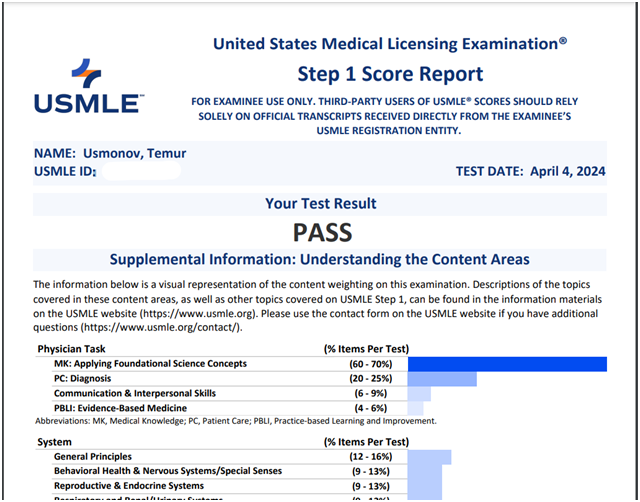 USMLE step 1 (PASS) – Отчёт | Тимур