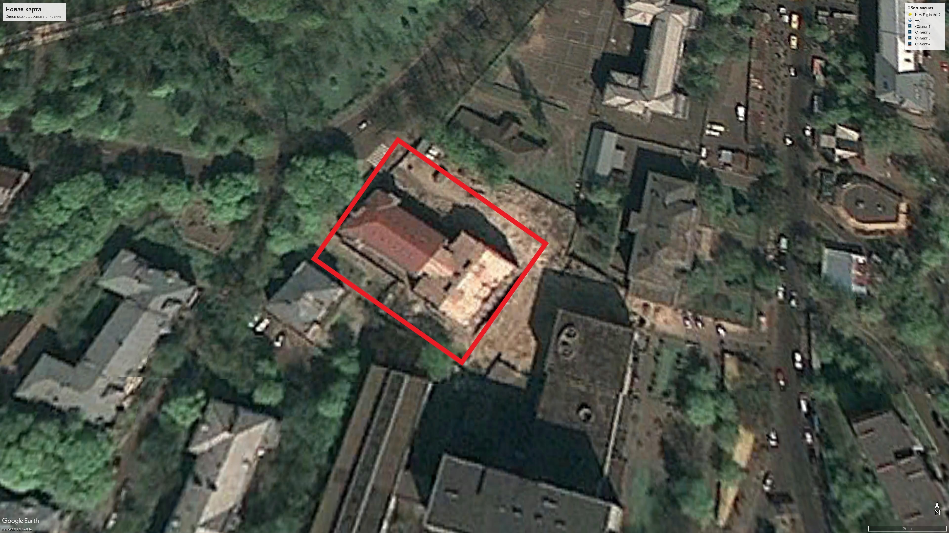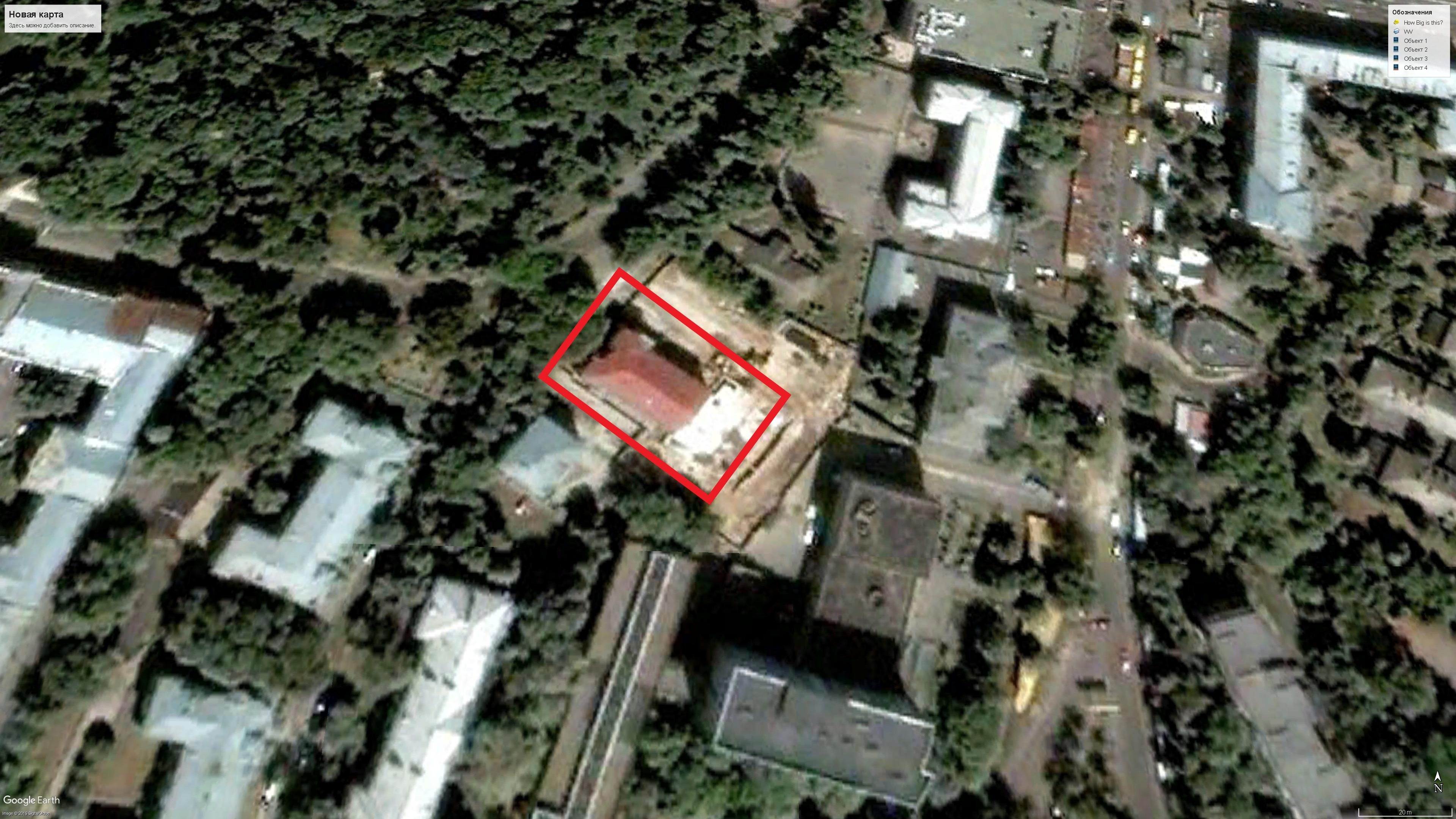 Как видно из снимка, стройка в середине 2008 года находится еще в активной фазе (белое пятно). Красная крыша - старая часть 35-го корпуса.