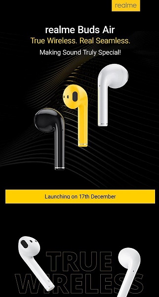 Производитель анонсирует наушники Realme Buds Air уже 17 декабря. Источник: Twitter
