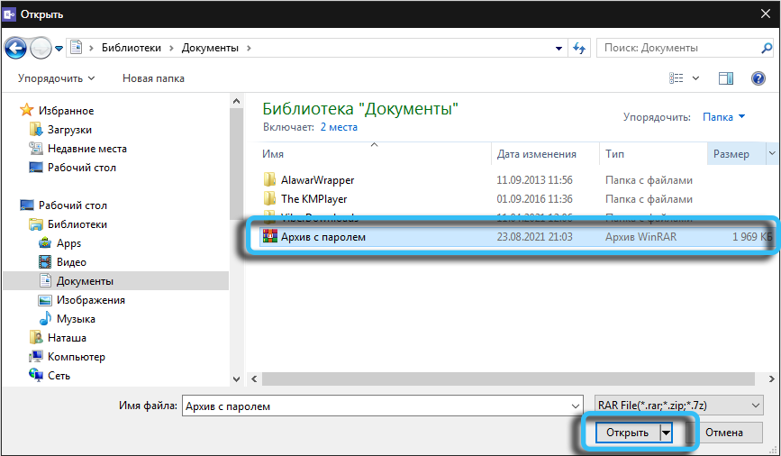 Убрать пароль rar